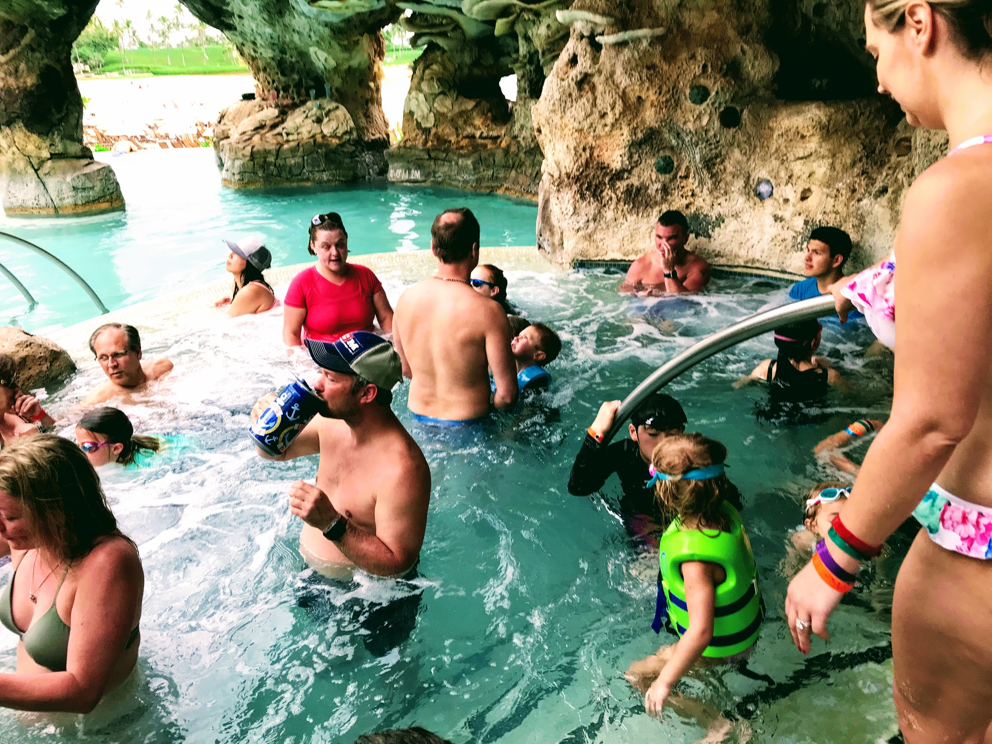 If you don’t have children with you, the adults-only hot tubs should be your first choice. They have the best view and are typically the least crowded. The Ka Maka grotto hot tub is beautifully themed, but is frequently so crowded as to remind you of a petri dish. The hot tub around which the Waikolohe Stream winds is nice, but is rather out of the way. On a cool windy day, the walk to it when you are dripping wet is not pleasant. The last one, set into the Waikolohe pool’s peninsula, also tends to get rather crowded given its proximity to the main pool of the resort.